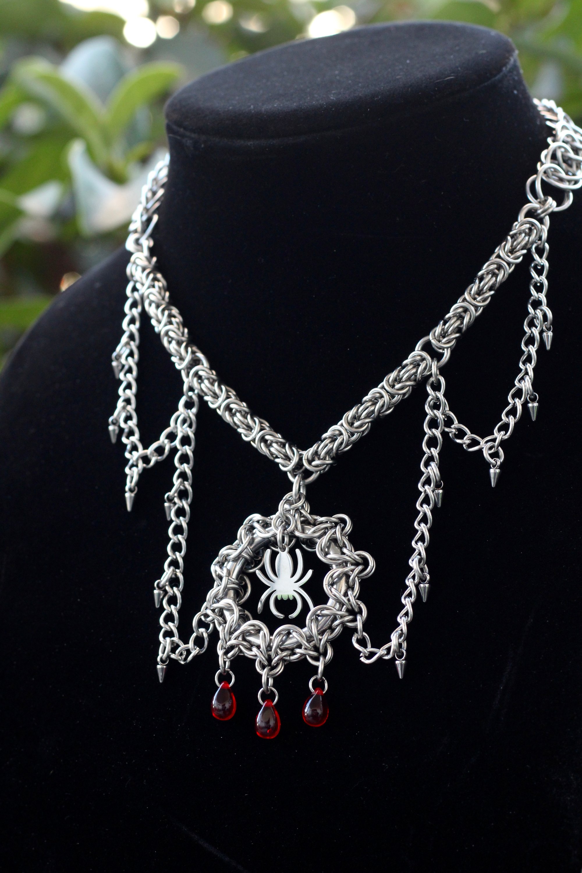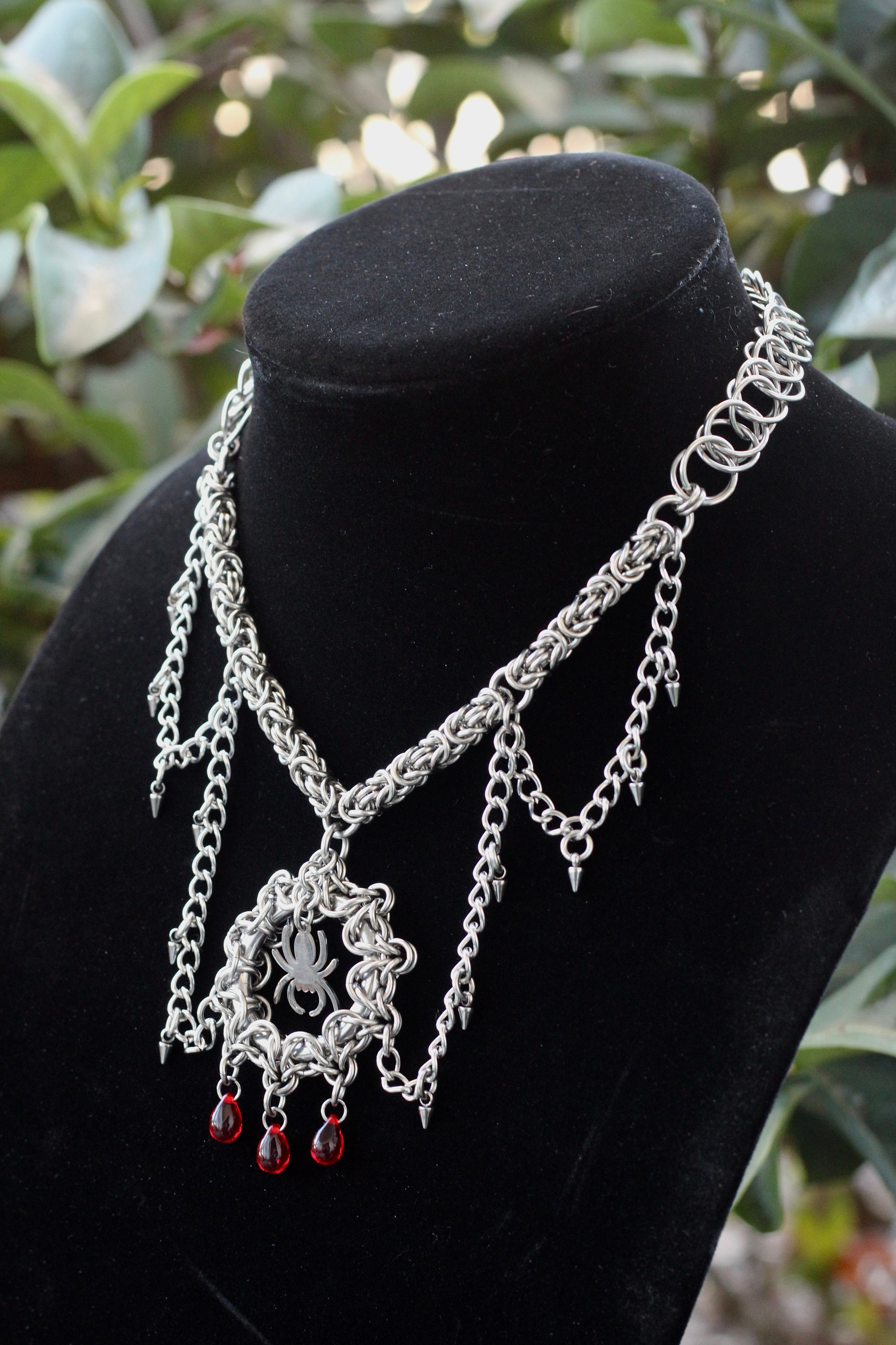 Handmade with Stainless Steel and glass drop beads.