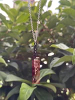 Bloody knife necklace made with miyuki seed beads, a glass drop bead, and stainless steel chain and findings.