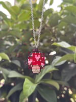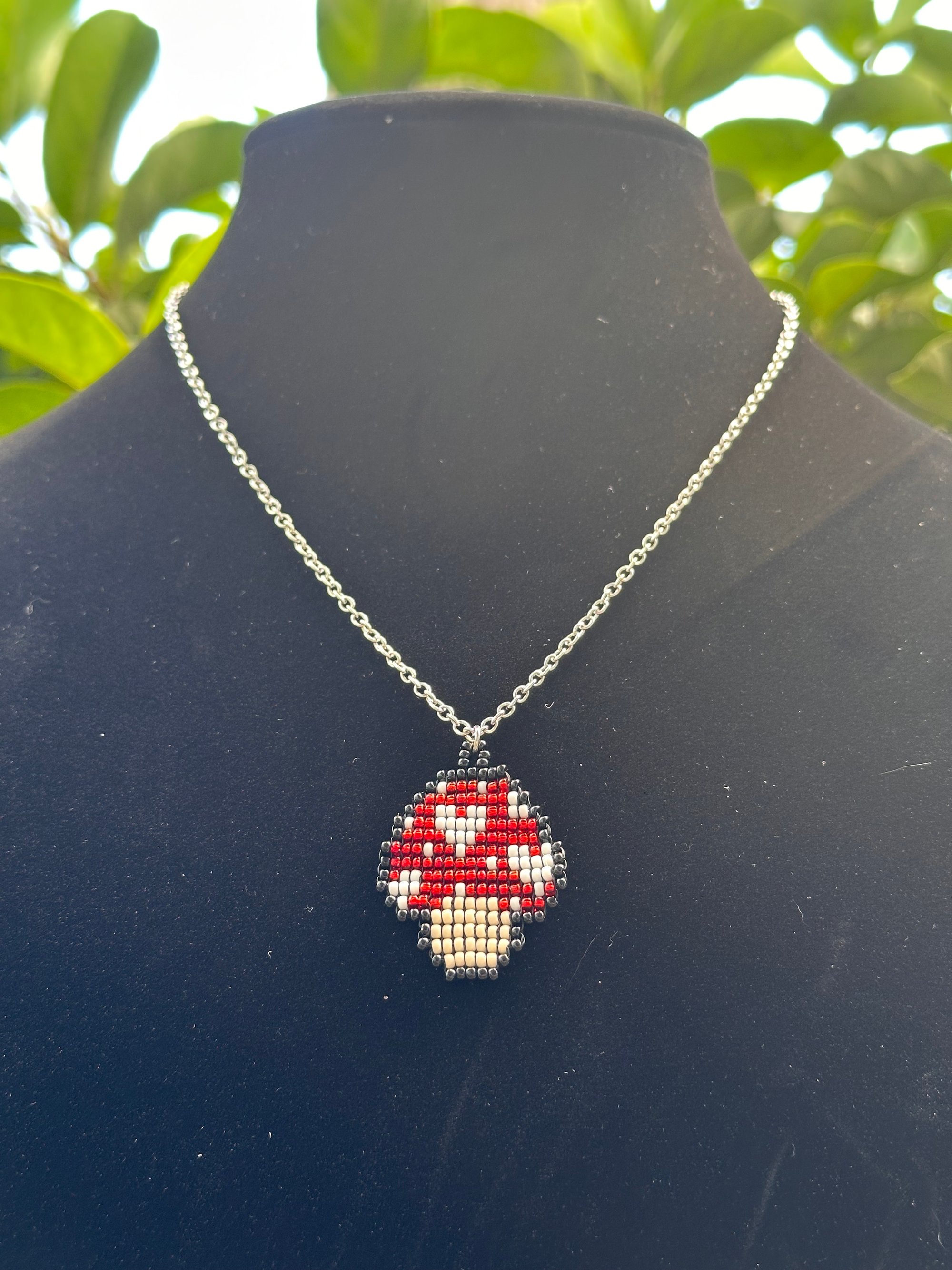 Mushroom necklace made with miyuki seed beads and stainless steel chain and findings.