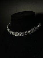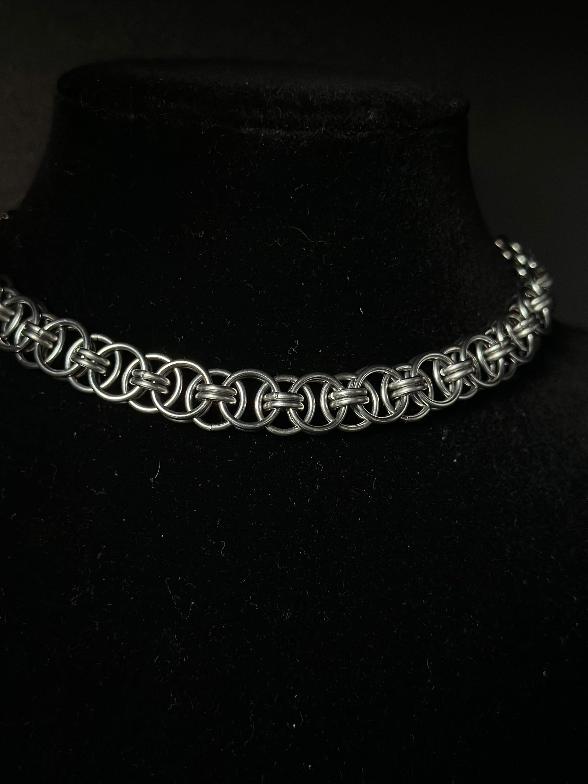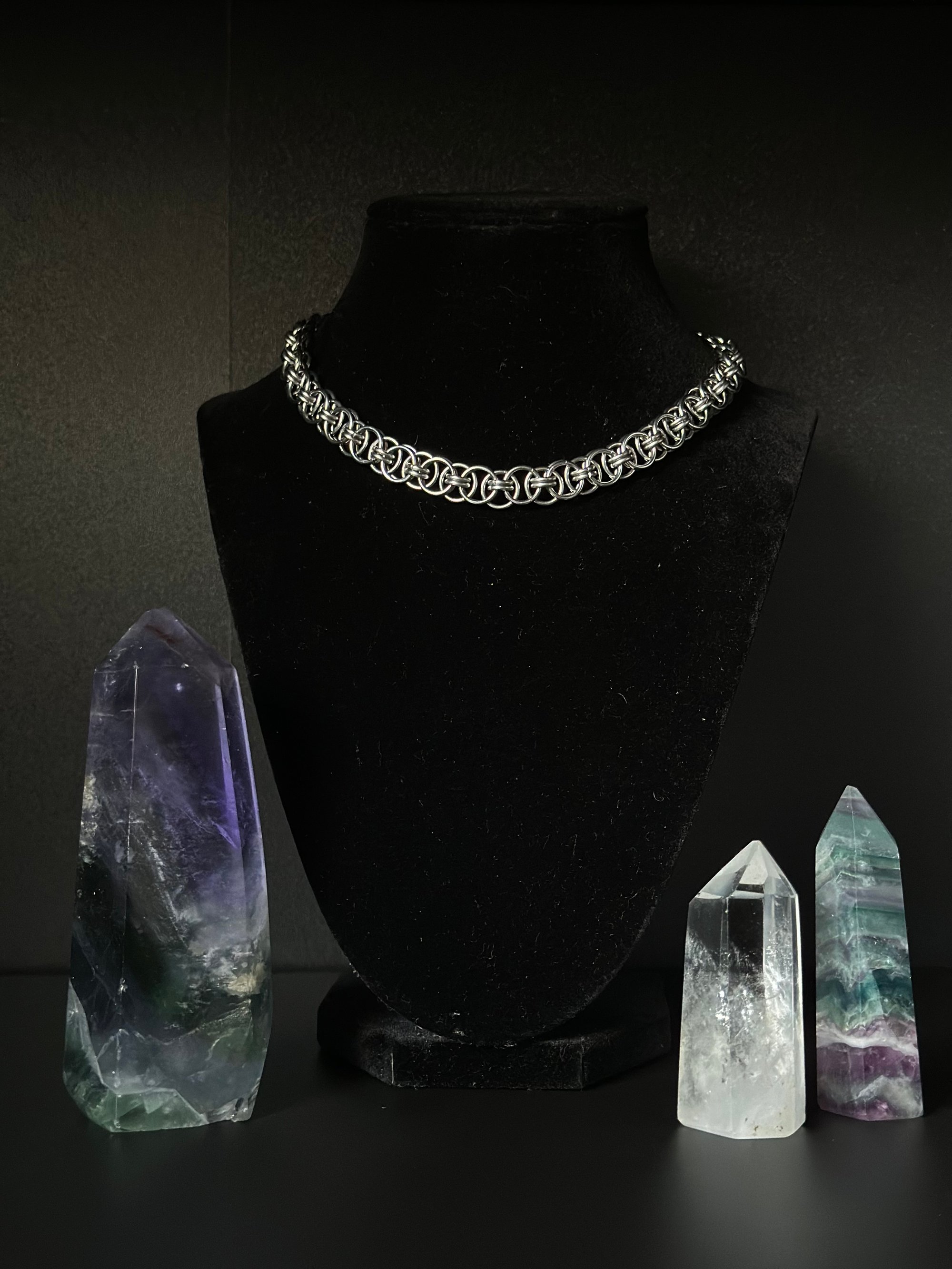 This piece is 15” in length with an added 2” of adjustability. Please leave a note at checkout or reach out to me if you’d like any size adjustments!